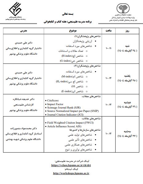 برگزاری مجموعه کارگاه‌های مدرسه علم‌سنجی به مناسبت هفته کتاب