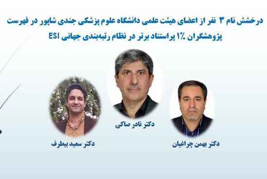 به گزارش روابط عمومی دانشگاه علوم پزشکی جندی شاپور اهواز، بر اساس آخرین نتایج رتبه بندی پایگاه استنادی Essential Science Indicators (ESI) که در سال 2025 منتشر شده است، آقایان دکتر نادر صاکی استاد گوش و حلق و بینی، دکتر بهمن چراغیان استاد آمار و اپیدمیولوژی، دکتر سعید بیطرف استادیار اپیدمیولوژی دانشگاه علوم پزشکی جندی شاپور اهواز توانستند در جمع دانشمندان یک درصد پراستناد برتر جهان قرار گیرند.